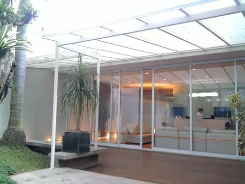 A cobertura de vidro é uma solução moderna e elegante que combina proteção e aproveitamento da luz natural.